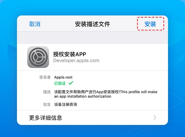 1出现MDM 有效负载不匹配请前往设置-通用-描述文件与设备管理移除移动设备管理下方的描述文件重新安装。如长时间显示请等待或安装中,请刷新浏览器或检查桌面是否已安装。